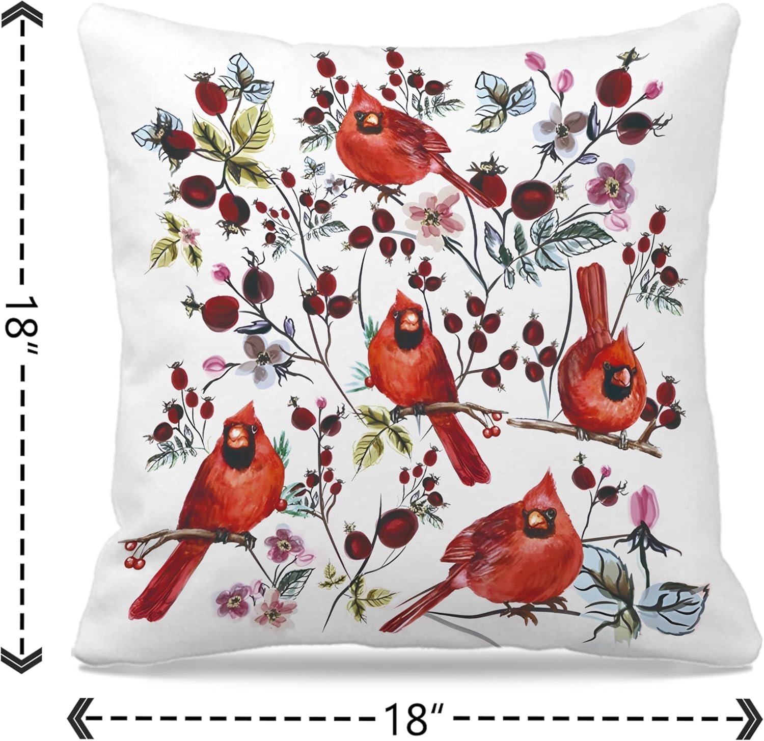 Nogrit Christmas Cardinal Pillow Covers 18x18, Cardinal Decor, Cardinal Christmas Decorations, Winter Red Cardinal Birds Cherries Decorative Pillow Covers for Holiday Home Decor, Winter Home Decor
