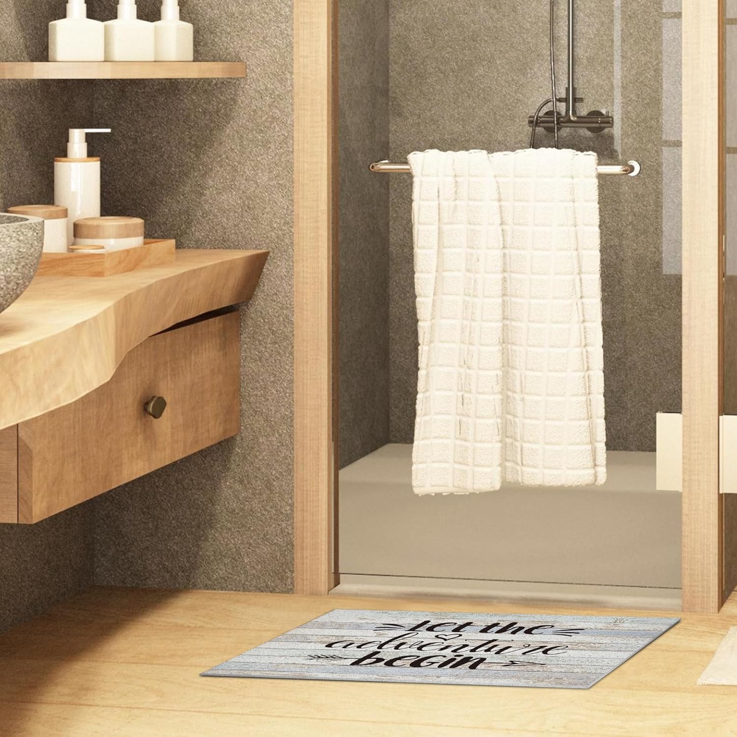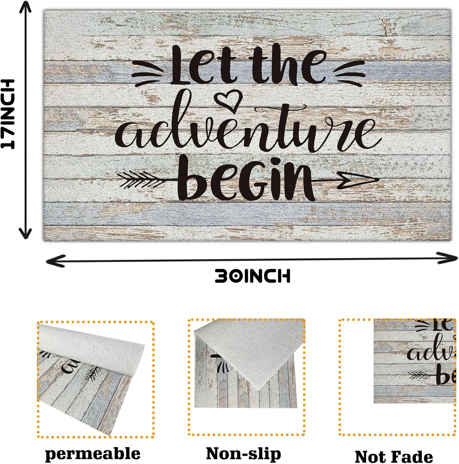 Nogrit Let The Adventure Begin Rustic Camping Waterproof Door Mat Outdoor Entrance 17x30 Inch Non-Slip Doormat for RV Campsite Front Door Porch Outdoor Indoor Decorations,Campers Adventurers Gifts